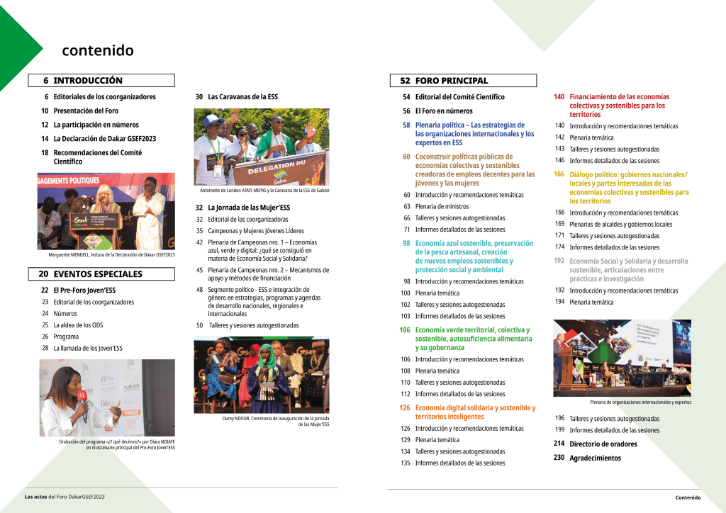 El objetivo de las Actas del Foro es consignar los acontecimientos del #DakarGSEF2023, poner de relieve los ricos intercambios que tuvieron lugar durante los talleres y las sesiones plenarias, destacar los hechos políticos del Foro y fomentar nuevos vínculos a través del directorio de ponentes.